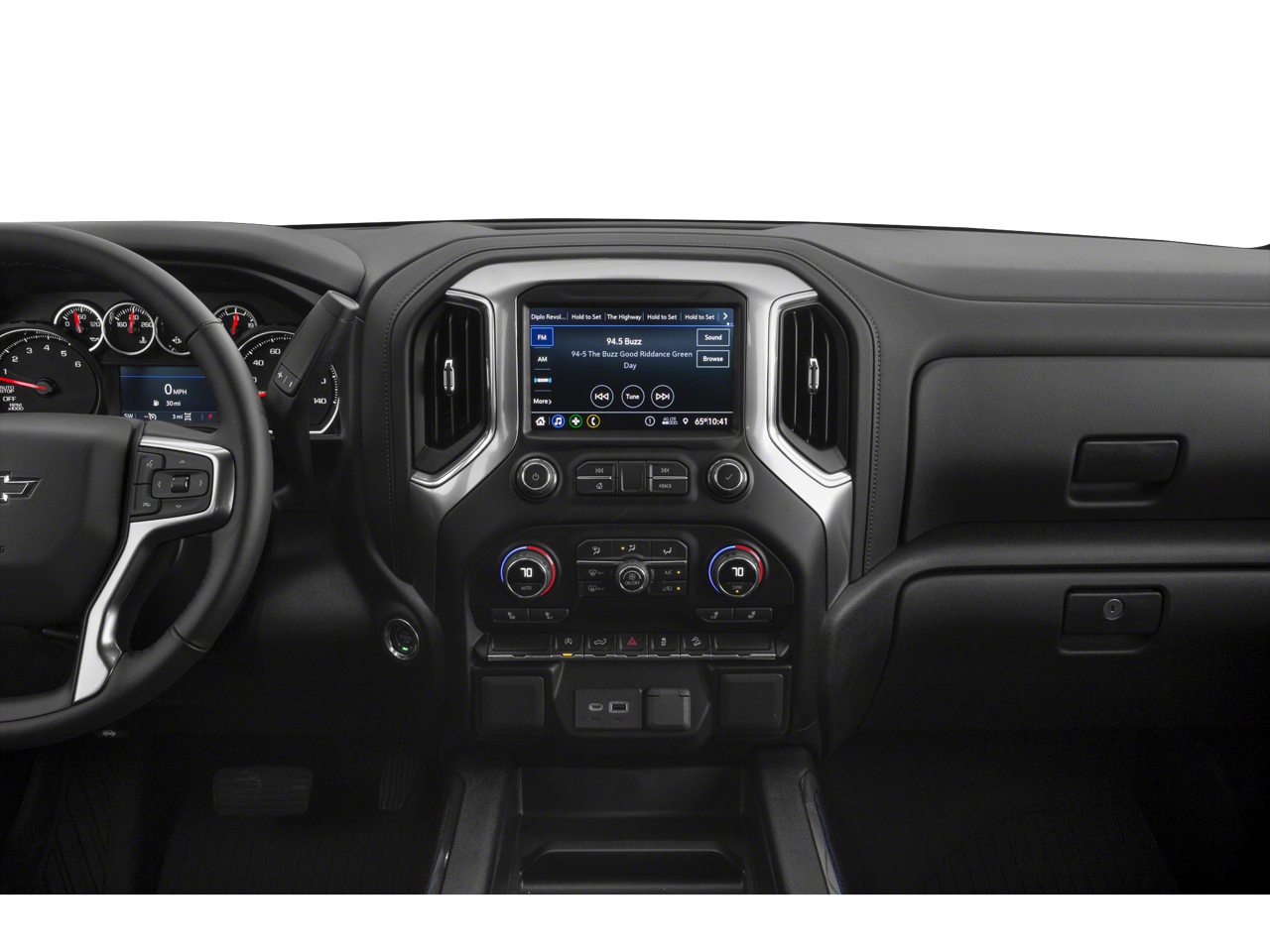 CONVENIENCE PACKAGE II includes (UG1) Universal Home Remote, (A48) rear sliding power window, (KI4) 120-volt power outlet, (KC9) 120-volt bed-mounted power outlet, (IOS) Chevrolet Infotainment System with 8" diagonal color touch-screen with (MCR) USB ports, SiriusXM with 360L, (U2L) HD Radio and (UVB) HD Rear Vision Camera Includes (UQA) Bose Premium Sound System. Certain 21MY vehicles will include (RG0) Not Equipped with HD Radio, which removes (U2L) HD Radio. See dealer for details.), SAFETY PACKAGE includes (UD5) Front and Rear Park Assist, (UKC) Lane Change Alert with Side Blind Zone Alert and (UFG) Rear Cross Traffic Alert (Includes Perimeter Lighting. BED PROTECTION PACKAGE includes (B1J) wheel house liners and (CGN) Chevytec spray-on bedliner, CHEVROLET INFOTAINMENT 3 PLUS SYSTEM 8" diagonal HD color touchscreen, AM/FM stereo, Bluetooth® audio streaming for 2 active devices, wireless Apple CarPlay® and Android Auto® capable, voice recognition, in-vehicle apps, cloud connected personalization for select infotainment and vehicle settings. Subscription required for enhanced and connected services after trial period. ENGINE, 5.3L ECOTEC3 V8 (355 hp [265 kW] @ 5600 rpm, 383 lb-ft of torque [518 Nm] @ 4100 rpm); featuring available Dynamic Fuel Management that enables the engine to operate in 17 different patterns between 2 and 8 cylinders, depending on demand, to optimize power delivery and efficiency (STD), ELECTRONICALLY CONTROLLED with overdrive and tow/haul mode. Includes Cruise Grade Braking and Powertrain Grade Braking (STD) (Most vehicles built on or after 6-7-2021 with a V8 engine and (MQB) 10-speed automatic transmission will have (NSS) Not Equipped with Automatic Stop/Start, which removes Automatic Stop/Start and its content.), UP-LEVEL REAR WITH STORAGE PACKAGE 60/40 folding bench for Crew Cab models, includes full-length bench seat, seatback storage on left and right side, center fold out armrest with 2 cupholders, full cab width underseat storage, (includes child seat top tether anchor).